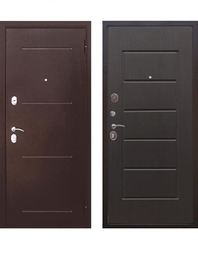 Дверь эконом: порошковое напыление, цвет Медный антик + МДФ-панель (10 мм), цвет Венге ЭК-2057